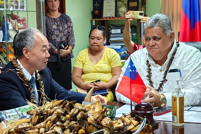 當(dāng)?shù)貢r間4?月19日,農(nóng)業(yè)農(nóng)村部副部長馬有祥在薩摩亞首都阿皮亞應(yīng)約會見薩摩亞總理兼外交貿(mào)易部部長菲婭梅,雙方進(jìn)行了親切友好交談。隨后,與薩農(nóng)漁業(yè)部部長拉烏利舉行雙邊會談,就加強(qiáng)兩國農(nóng)漁業(yè)合作充分交換意見。